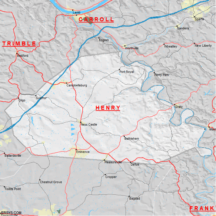 Henry County, KY (shown in white) has 286.25 mi² of land area and 4.87 mi² of water resources. The county is bordered by: