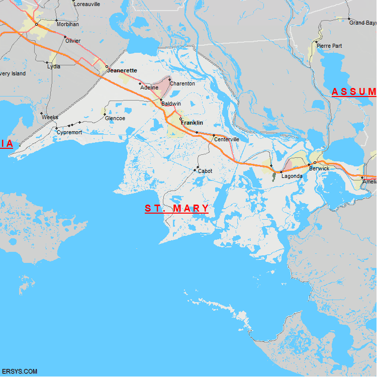 The estimated population of St. Mary Parish is 48,259 with 18,867 households. These households are spread across 12 unique municipalties (not all shown).