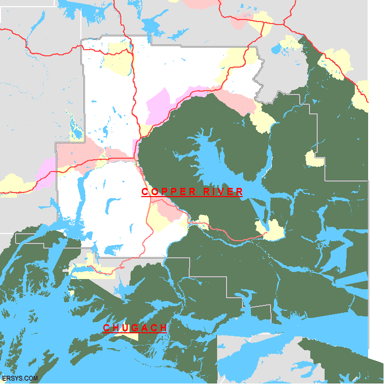 The estimated population of Copper River Census Area is 2,611 with 1,131 households. These households are spread across 20 unique municipalties (not all shown).