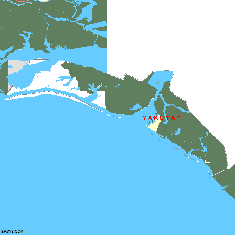Yakutat City and Borough, AK (shown in white) has 7,623.27 mi² of land area and 1,539.06 mi² of water resources. The county is bordered by: