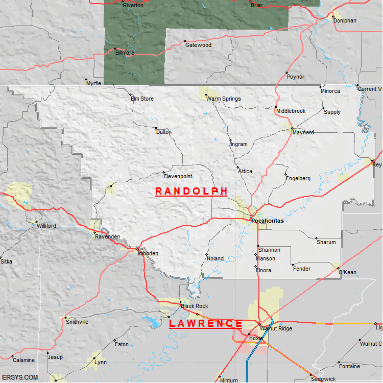 Randolph County, AR (shown in white) has 651.91 mi² of land area and 4 mi² of water resources. The county is bordered by: