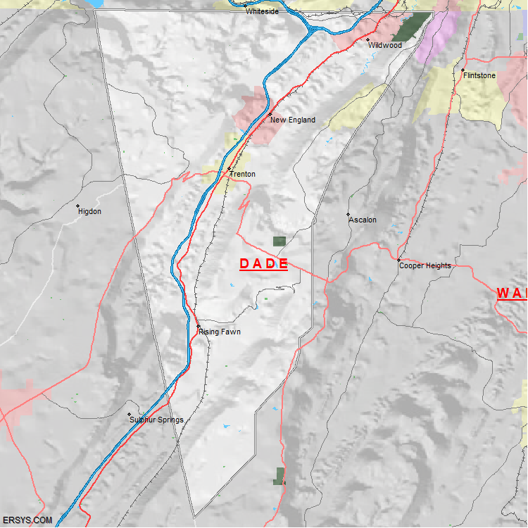 The estimated population of Dade County is 16,550 with 6,485 households. These households are spread across 4 unique municipalties (not all shown).