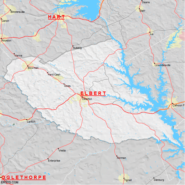 The estimated population of Elbert County is 20,369 with 8,318 households. These households are spread across 3 unique municipalties (not all shown).