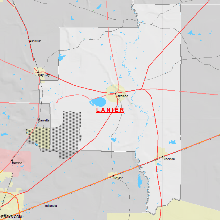 The estimated population of Lanier County is 10,458 with 3,788 households. These households are spread across 2 unique municipalties (not all shown).