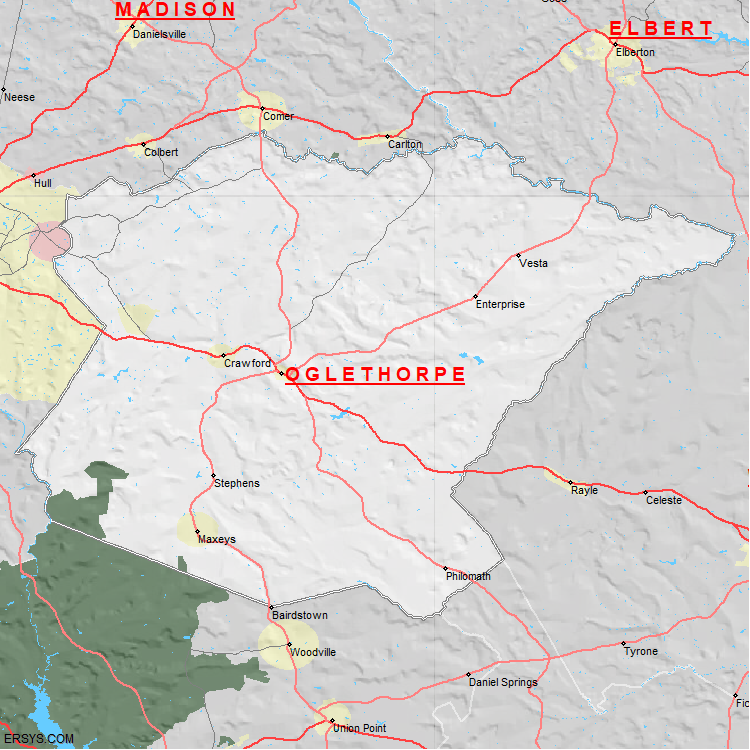 The estimated population of Oglethorpe County is 15,984 with 6,263 households. These households are spread across 4 unique municipalties (not all shown).