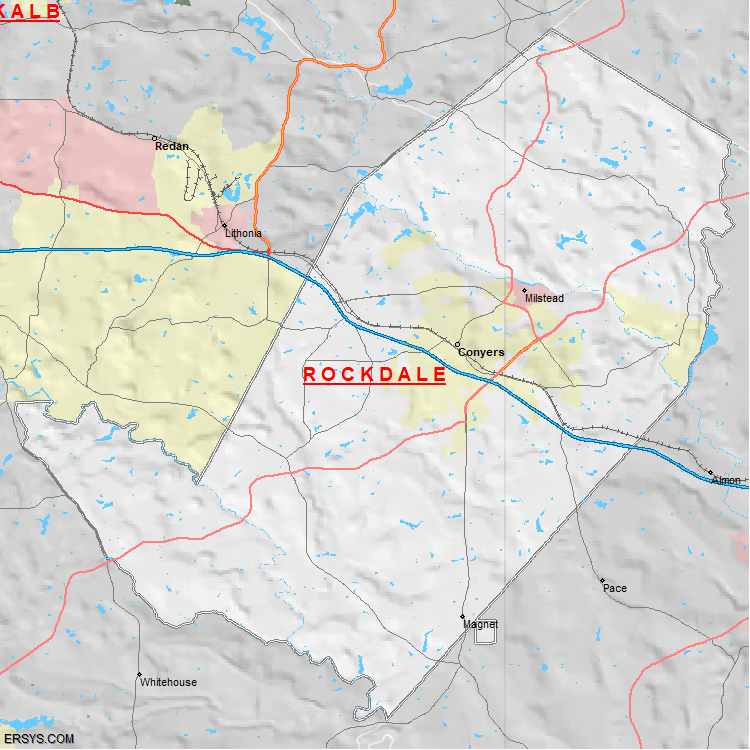 The estimated population of Rockdale County is 97,451 with 34,549 households. These households are spread across 3 unique municipalties (not all shown).