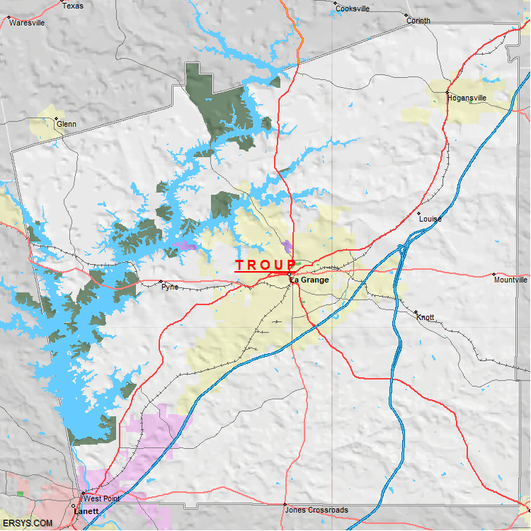 The estimated population of Troup County is 71,846 with 27,252 households. These households are spread across 3 unique municipalties (not all shown).