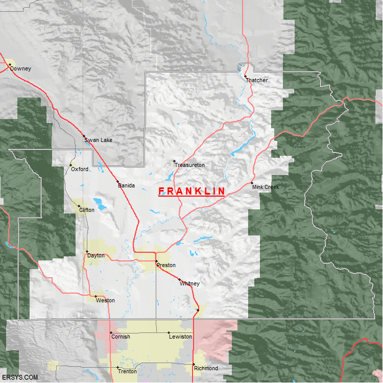 Franklin County, ID (shown in white) has 663.02 mi² of land area and 4.69 mi² of water resources. The county is bordered by: