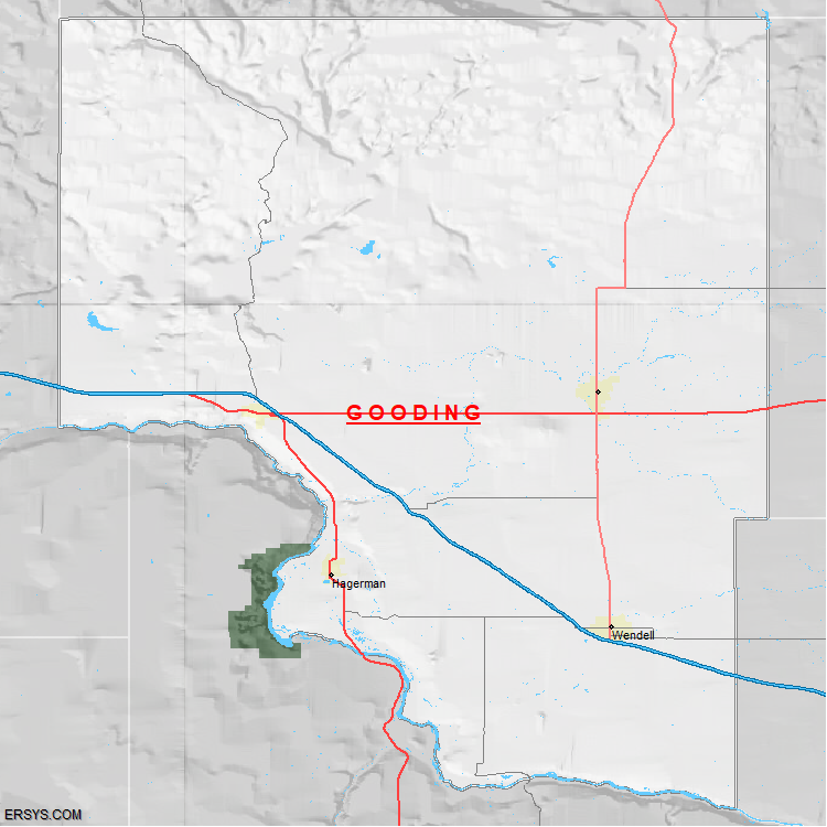 The estimated population of Gooding County is 16,256 with 5,896 households. These households are spread across 4 unique municipalties (not all shown).
