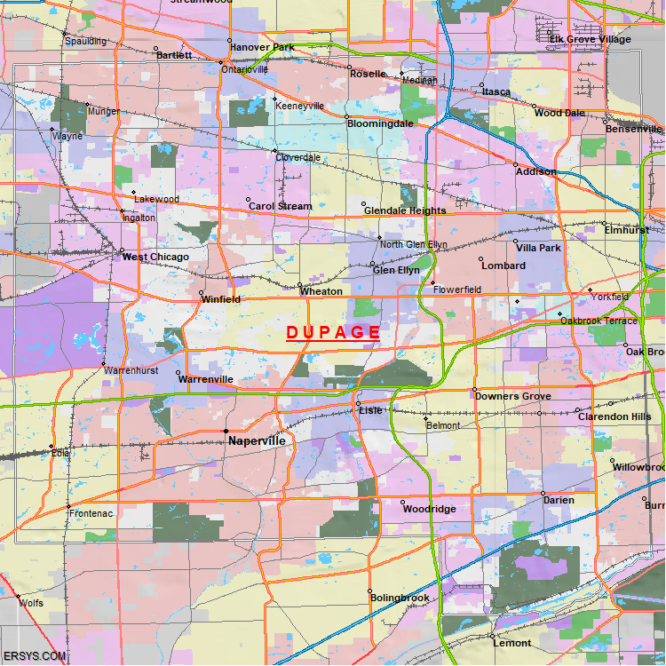 The estimated population of DuPage County is 930,456 with 347,536 households. These households are spread across 31 unique municipalties (not all shown).