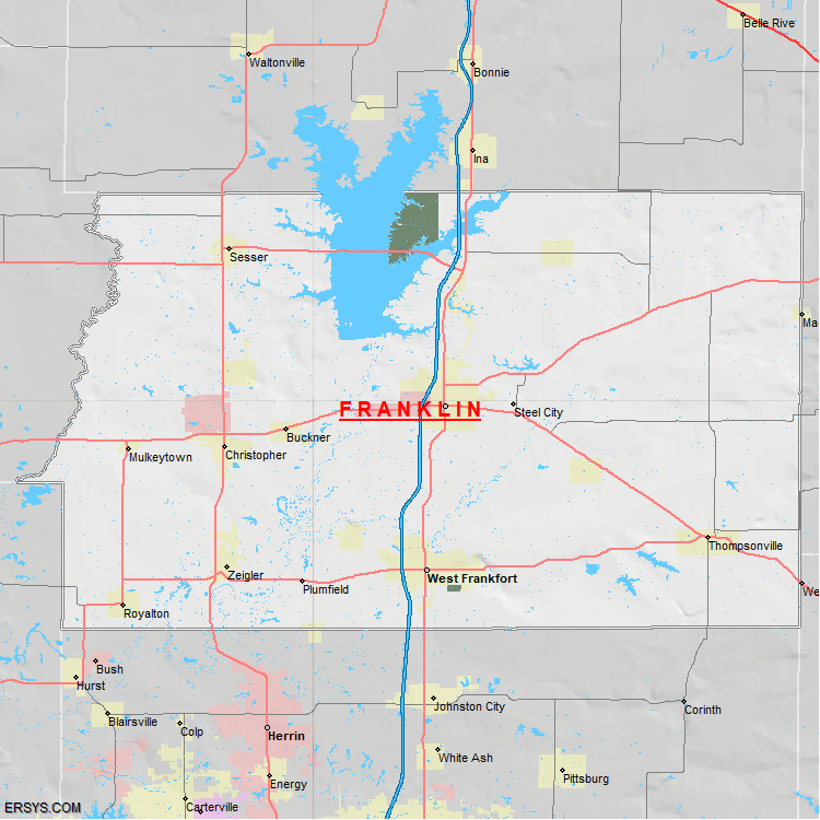 Franklin County, IL (shown in white) has 408.93 mi² of land area and 22.55 mi² of water resources. The county is bordered by:
