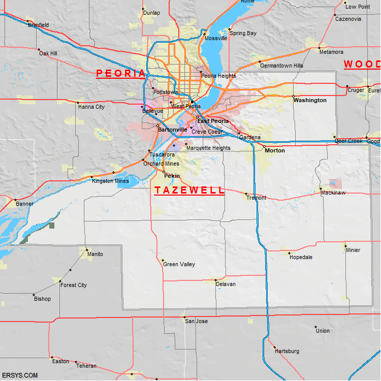 The estimated population of Tazewell County is 132,051 with 54,288 households. These households are spread across 17 unique municipalties (not all shown).
