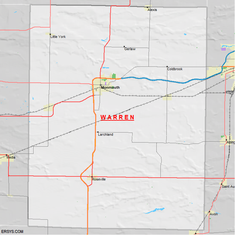 Warren County, IL (shown in white) has 542.38 mi² of land area and 0.65 mi² of water resources. The county is bordered by: