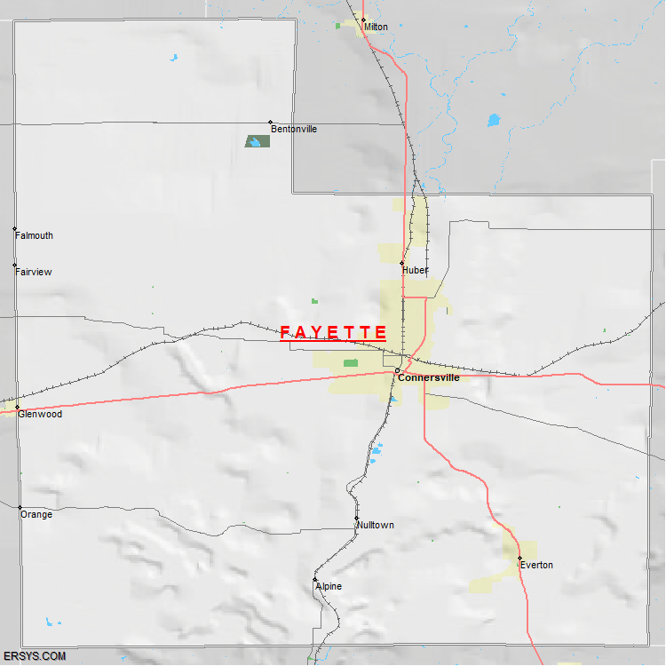 The estimated population of Fayette County is 23,589 with 9,807 households. These households are spread across 2 unique municipalties (not all shown).
