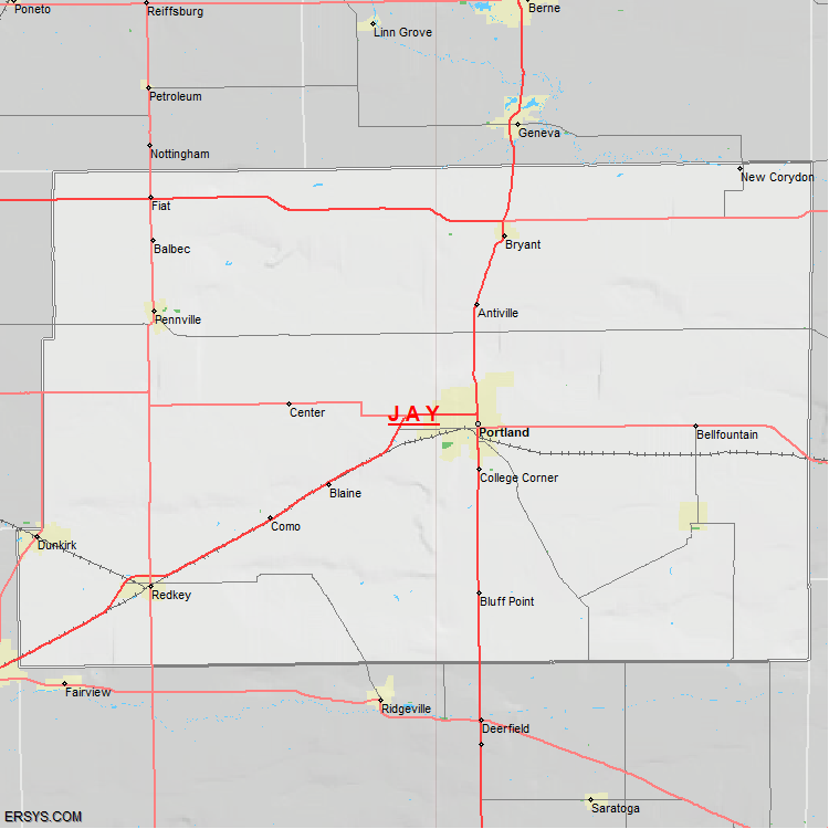 The estimated population of Jay County is 20,374 with 7,872 households. These households are spread across 6 unique municipalties (not all shown).