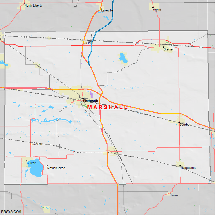 The estimated population of Marshall County is 46,976 with 17,826 households. These households are spread across 11 unique municipalties (not all shown).