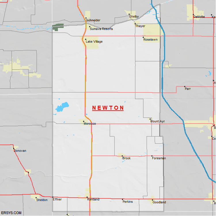 Newton County, IN (shown in white) has 401.75 mi² of land area and 1.68 mi² of water resources. The county is bordered by: