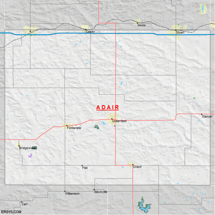 The estimated population of Adair County is 7,413 with 3,182 households. These households are spread across 6 unique municipalties (not all shown).
