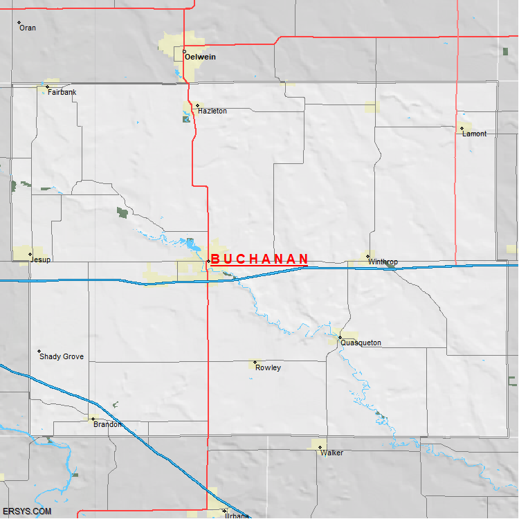The estimated population of Buchanan County is 20,892 with 8,331 households. These households are spread across 11 unique municipalties (not all shown).