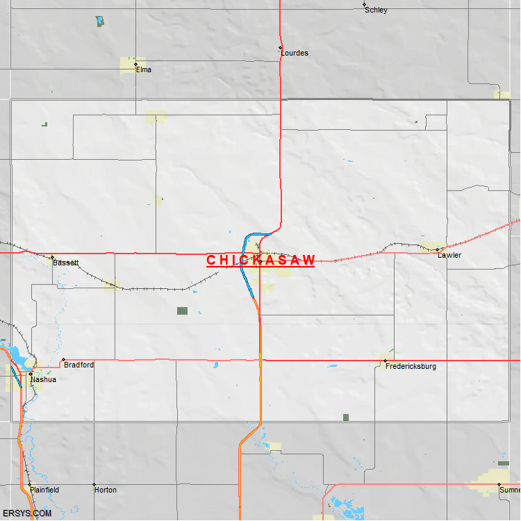 The estimated population of Chickasaw County is 12,090 with 5,053 households. These households are spread across 8 unique municipalties (not all shown).