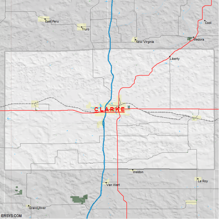 Clarke County, IA (shown in white) has 431.11 mi² of land area and 0.59 mi² of water resources. The county is bordered by: