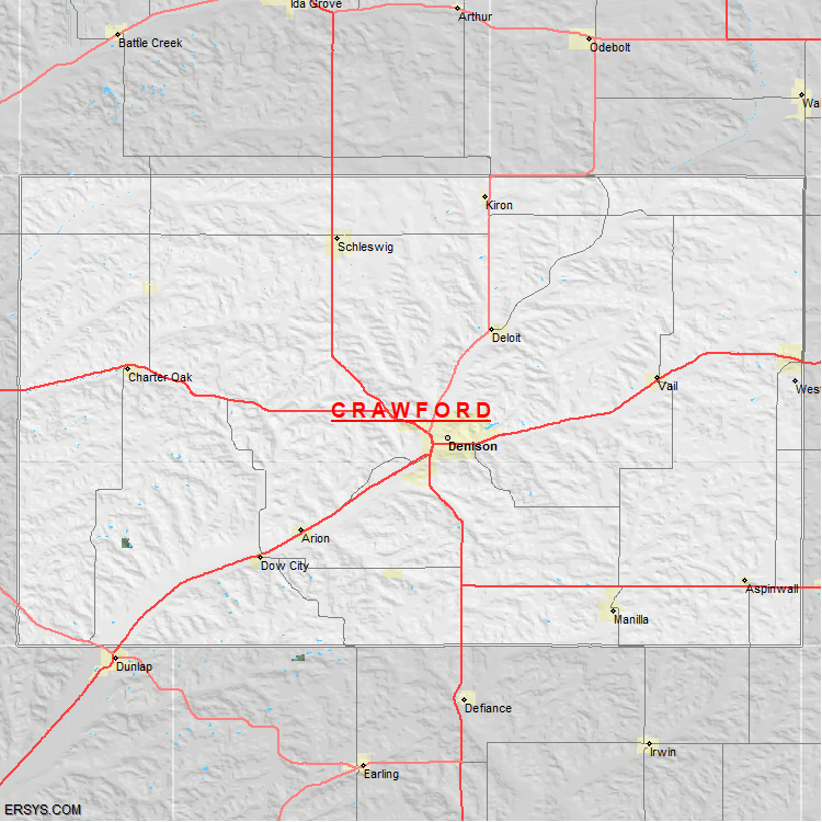 Crawford County, IA (shown in white) has 714.2 mi² of land area and 0.84 mi² of water resources. The county is bordered by: