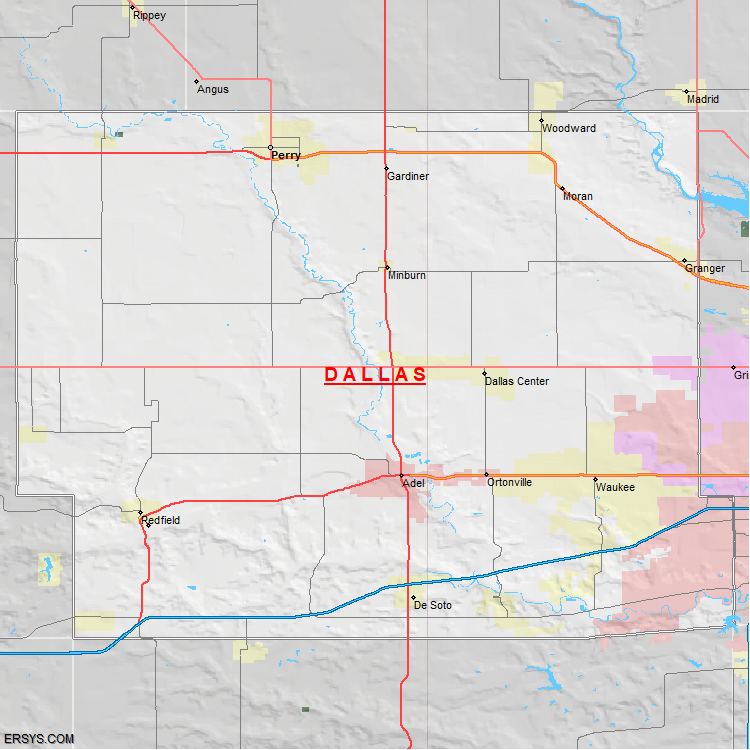 The estimated population of Dallas County is 114,602 with 43,948 households. These households are spread across 14 unique municipalties (not all shown).