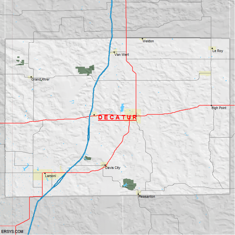 The estimated population of Decatur County is 7,741 with 3,034 households. These households are spread across 10 unique municipalties (not all shown).