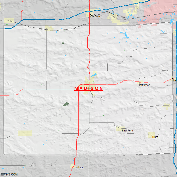 The estimated population of Madison County is 17,087 with 6,637 households. These households are spread across 7 unique municipalties (not all shown).