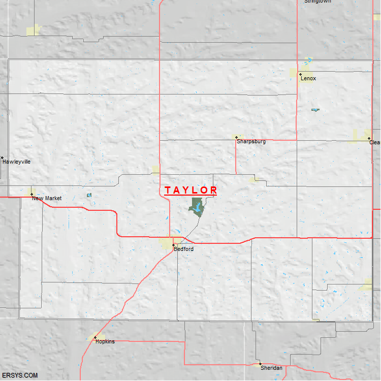 Taylor County, IA (shown in white) has 531.9 mi² of land area and 2.75 mi² of water resources. The county is bordered by: