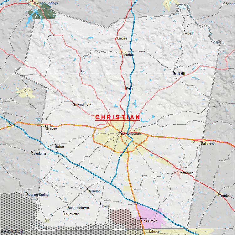 The estimated population of Christian County is 71,971 with 26,153 households. These households are spread across 8 unique municipalties (not all shown).