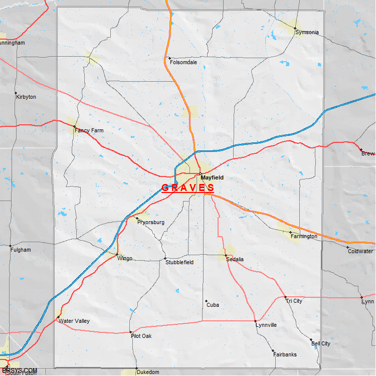 The estimated population of Graves County is 36,830 with 14,823 households. These households are spread across 10 unique municipalties (not all shown).