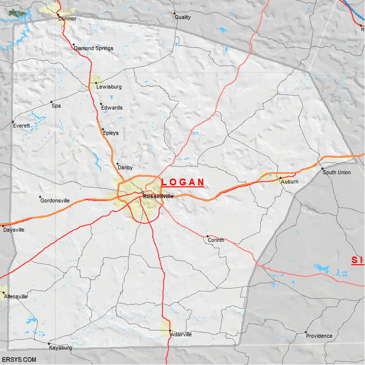 The estimated population of Logan County is 28,307 with 11,350 households. These households are spread across 4 unique municipalties (not all shown).
