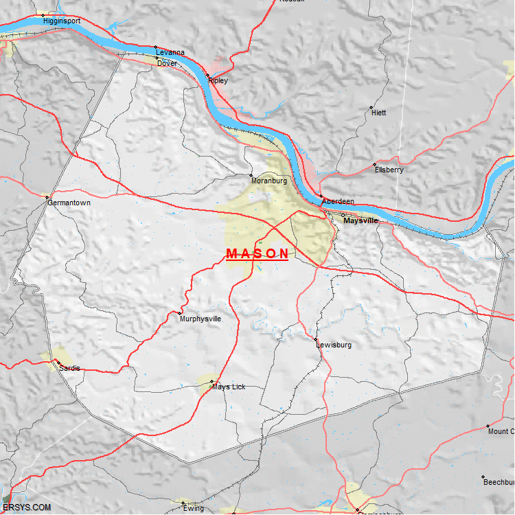 Mason County, KY (shown in white) has 240.13 mi² of land area and 6.28 mi² of water resources. The county is bordered by: