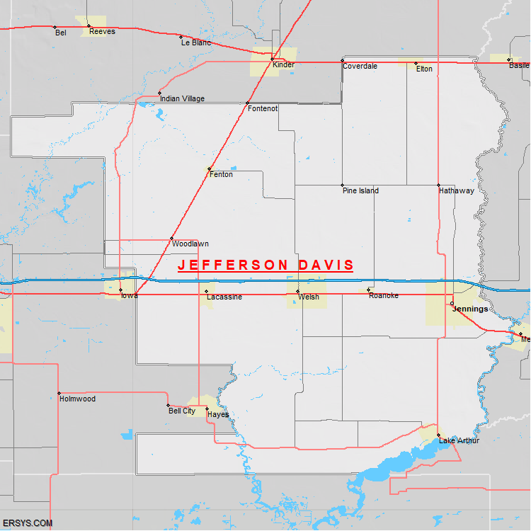 The estimated population of Jefferson Davis Parish is 32,178 with 12,169 households. These households are spread across 7 unique municipalties (not all shown).