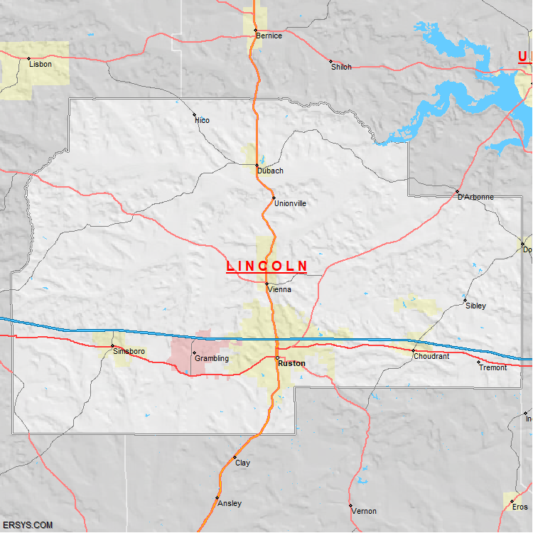 The estimated population of Lincoln Parish is 49,535 with 18,544 households. These households are spread across 6 unique municipalties (not all shown).
