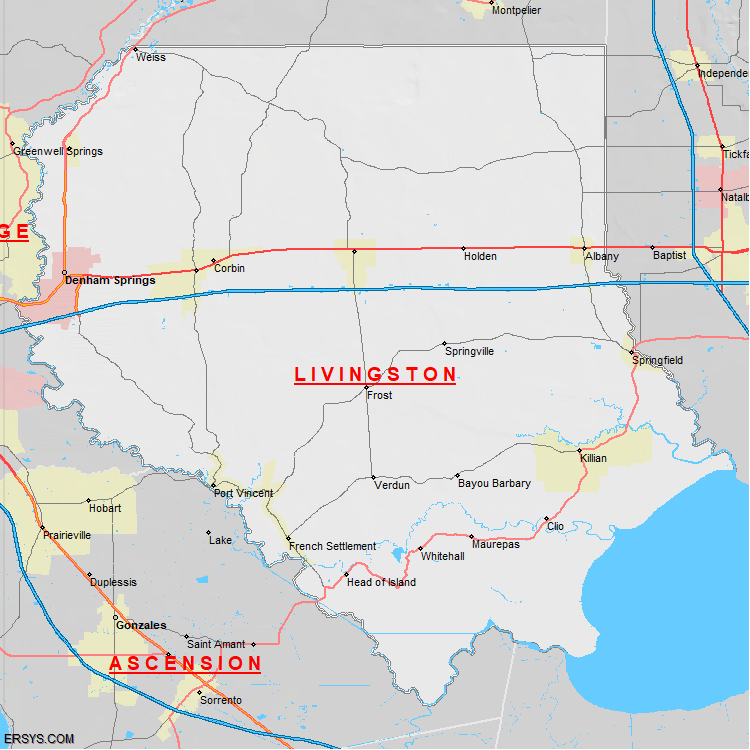 The estimated population of Livingston Parish is 152,989 with 56,573 households. These households are spread across 9 unique municipalties (not all shown).
