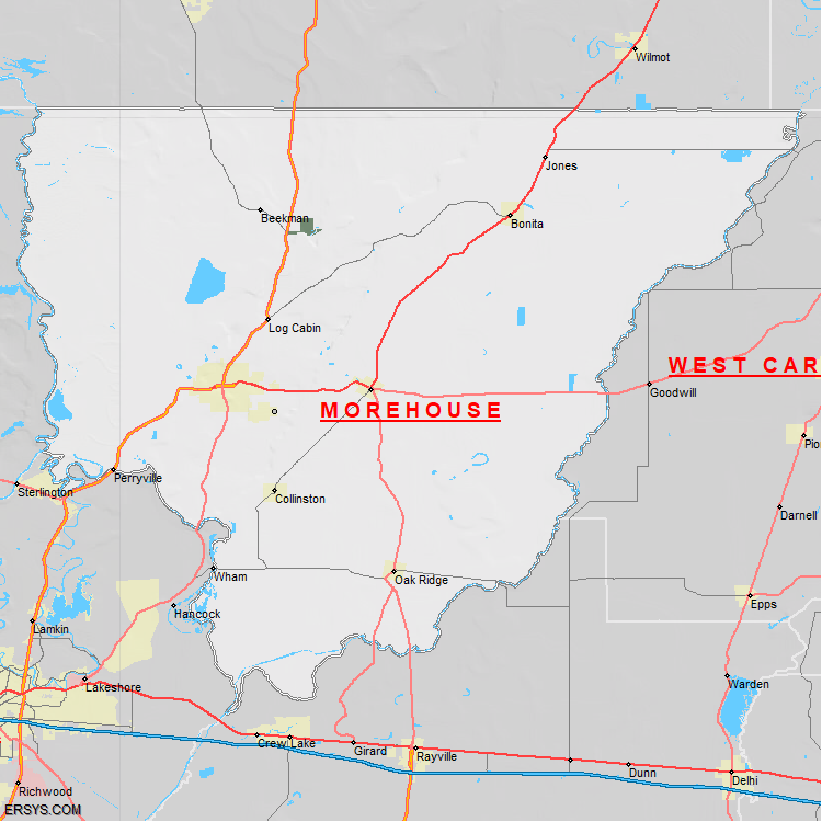 The estimated population of Morehouse Parish is 25,533 with 10,269 households. These households are spread across 5 unique municipalties (not all shown).
