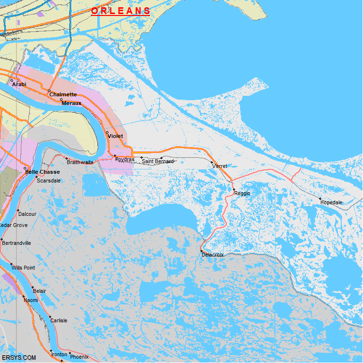 The estimated population of St. Bernard Parish is 45,247 with 16,781 households. These households are spread across 6 unique municipalties (not all shown).