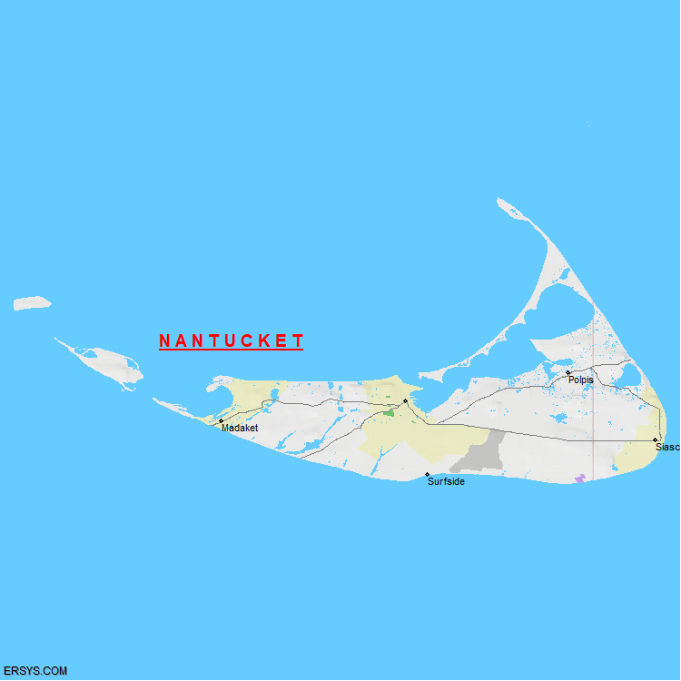 Nantucket County, MA (shown in white) has 46.19 mi² of land area and 257.46 mi² of water resources. The county is bordered by: