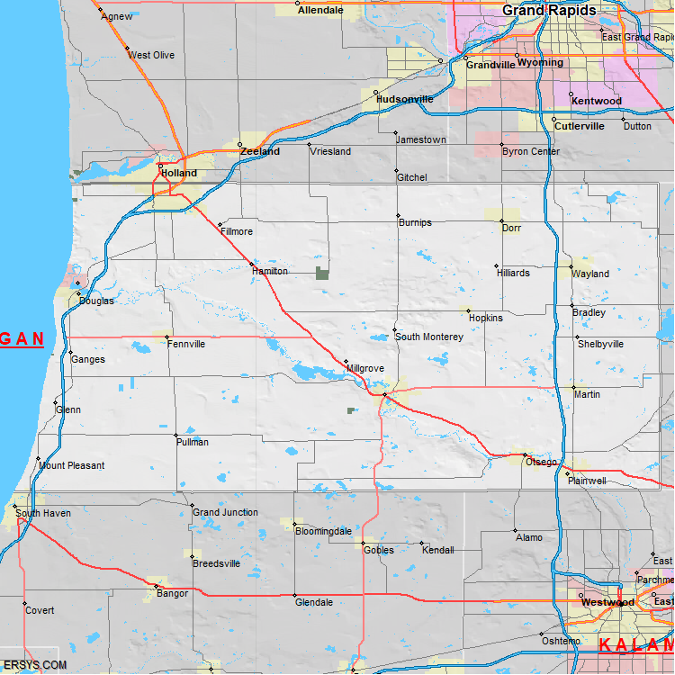 The estimated population of Allegan County is 123,908 with 46,861 households. These households are spread across 11 unique municipalties (not all shown).