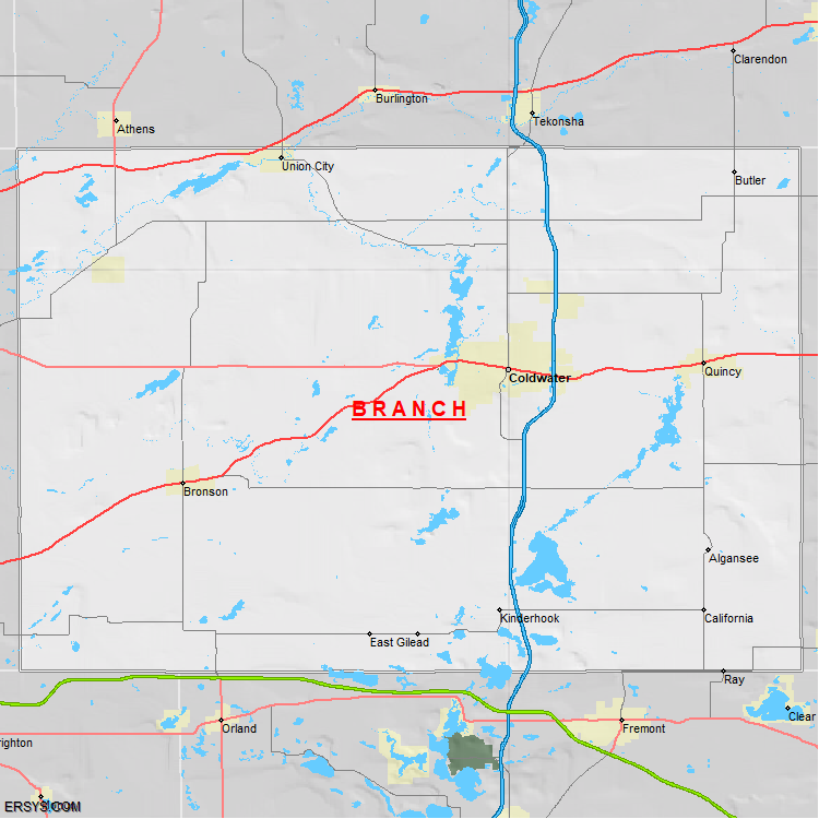 The estimated population of Branch County is 45,491 with 17,034 households. These households are spread across 5 unique municipalties (not all shown).