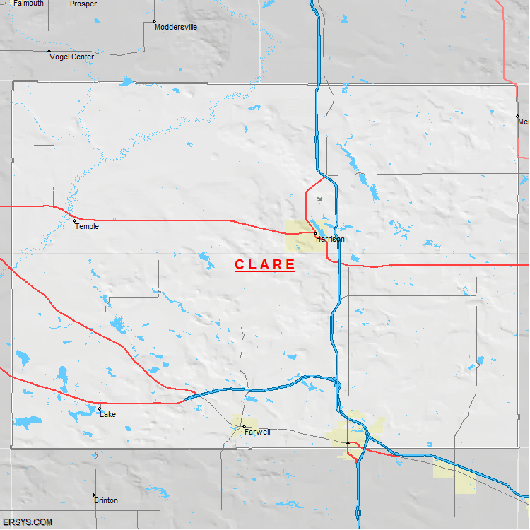 The estimated population of Clare County is 31,458 with 13,556 households. These households are spread across 3 unique municipalties (not all shown).