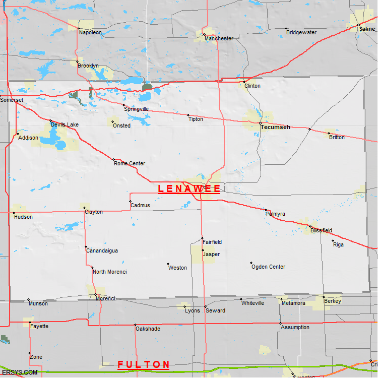 The estimated population of Lenawee County is 99,146 with 38,466 households. These households are spread across 14 unique municipalties (not all shown).