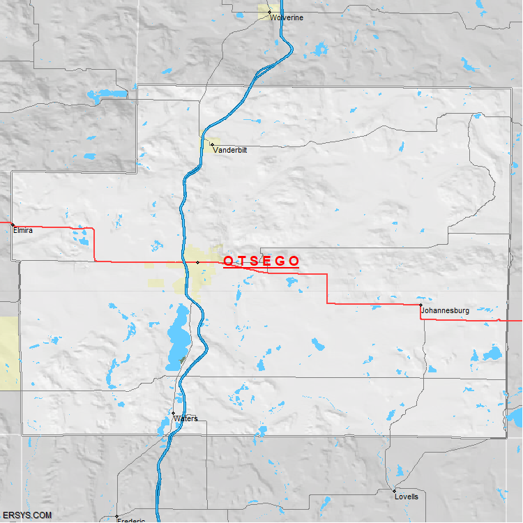 The estimated population of Otsego County is 26,059 with 10,828 households. These households are spread across 2 unique municipalties (not all shown).