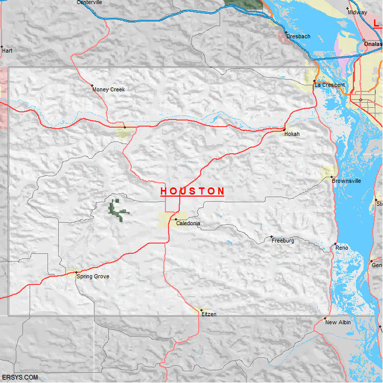 The estimated population of Houston County is 18,674 with 7,946 households. These households are spread across 7 unique municipalties (not all shown).
