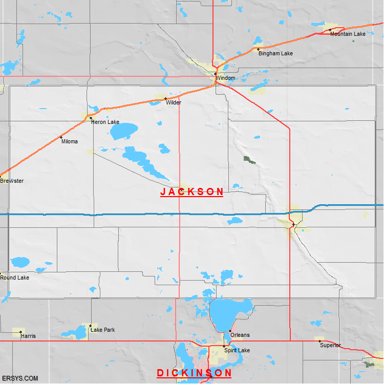 Jackson County, MN (shown in white) has 702.97 mi² of land area and 16.26 mi² of water resources. The county is bordered by: