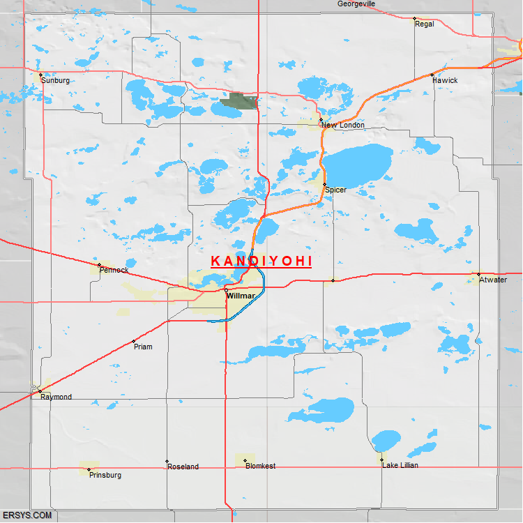 The estimated population of Kandiyohi County is 44,221 with 17,271 households. These households are spread across 12 unique municipalties (not all shown).