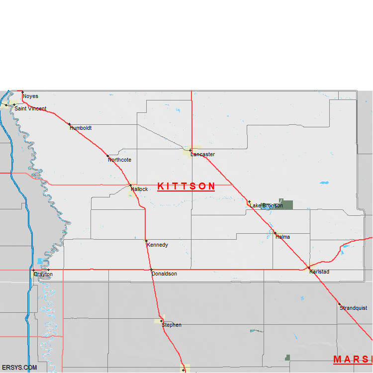 The estimated population of Kittson County is 4,205 with 1,848 households. These households are spread across 9 unique municipalties (not all shown).