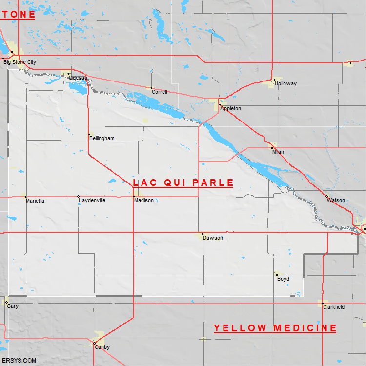 The estimated population of Lac qui Parle County is 6,683 with 2,942 households. These households are spread across 7 unique municipalties (not all shown).